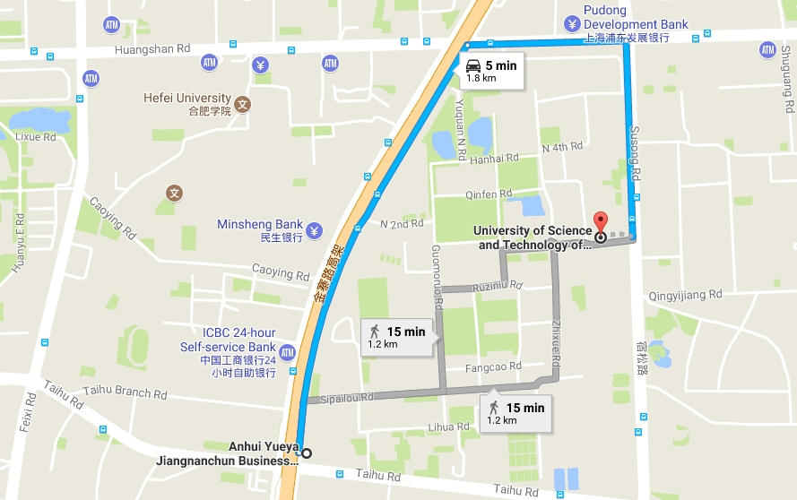 Hefei Railway Station: 8.9km, 30mins, ~20RMB