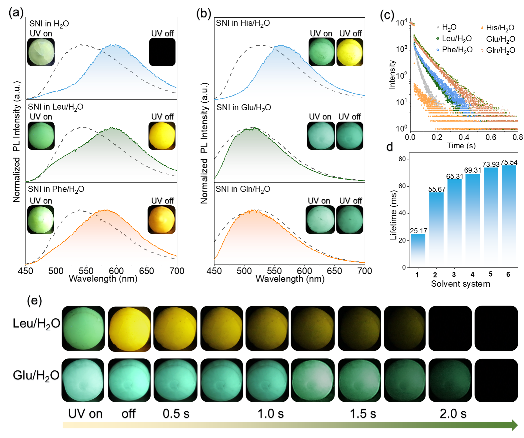 图2:SNI在不同氨基酸系统中的磷光光谱与寿命
